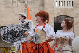 The ceremony takes place in the square in front of the Gesher Theater and along Jerusalem Boulevard, creating the atmosphere of a seaport in Jaffa combined with an open-air theatrical performance, all designed in the festival's colors.